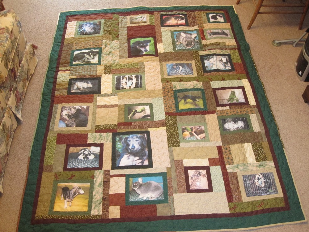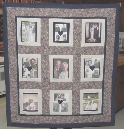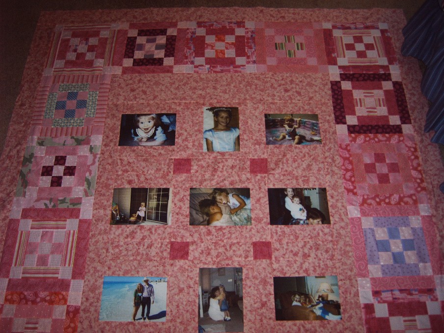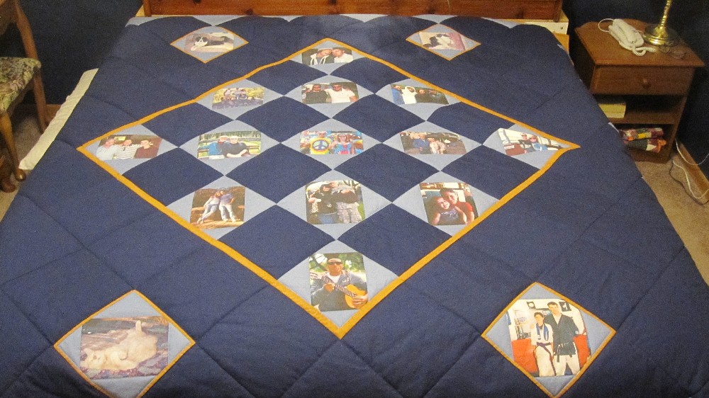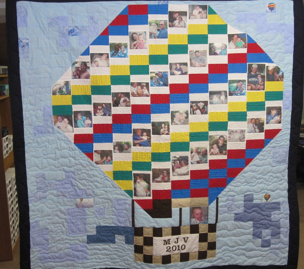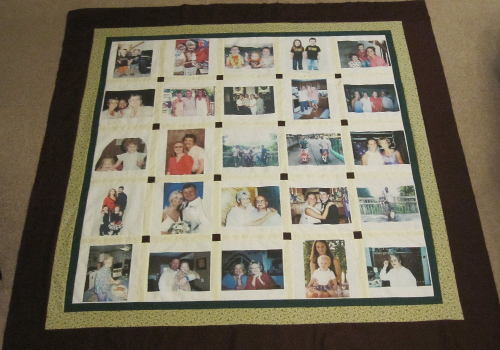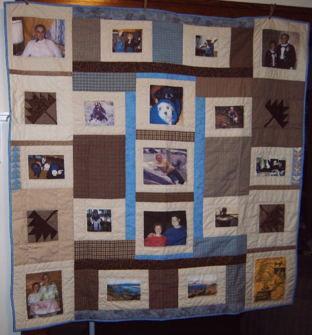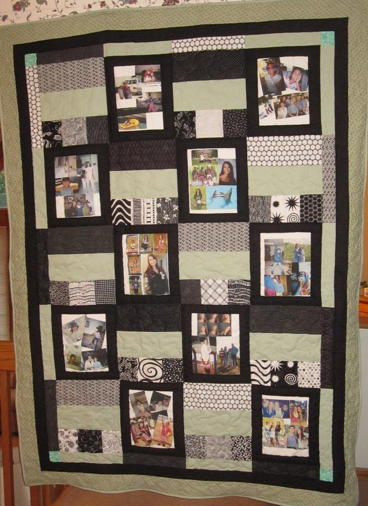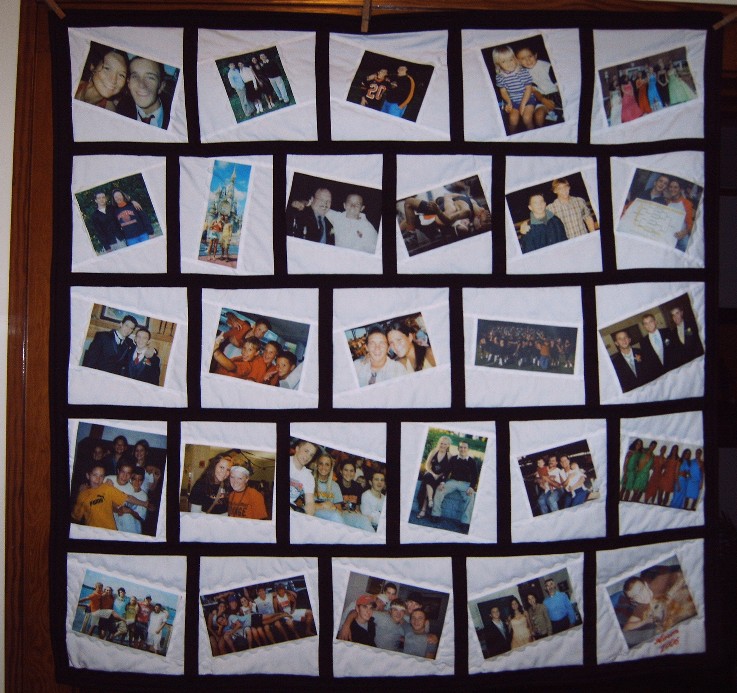This quilt seems like a mini photo album because of the variety of pictures.