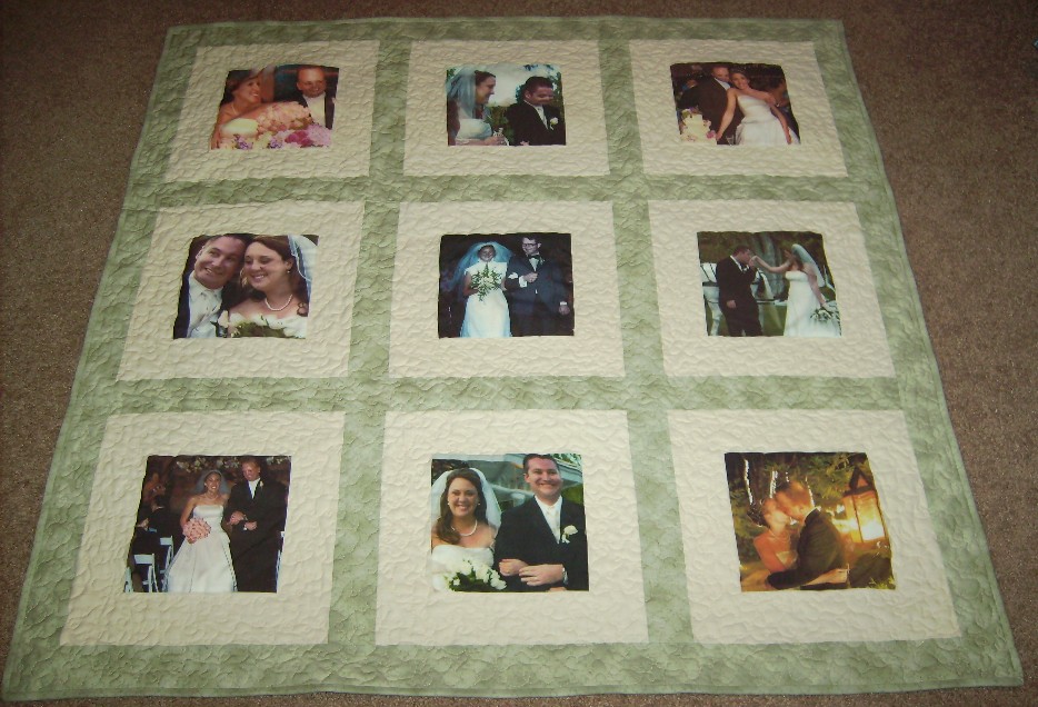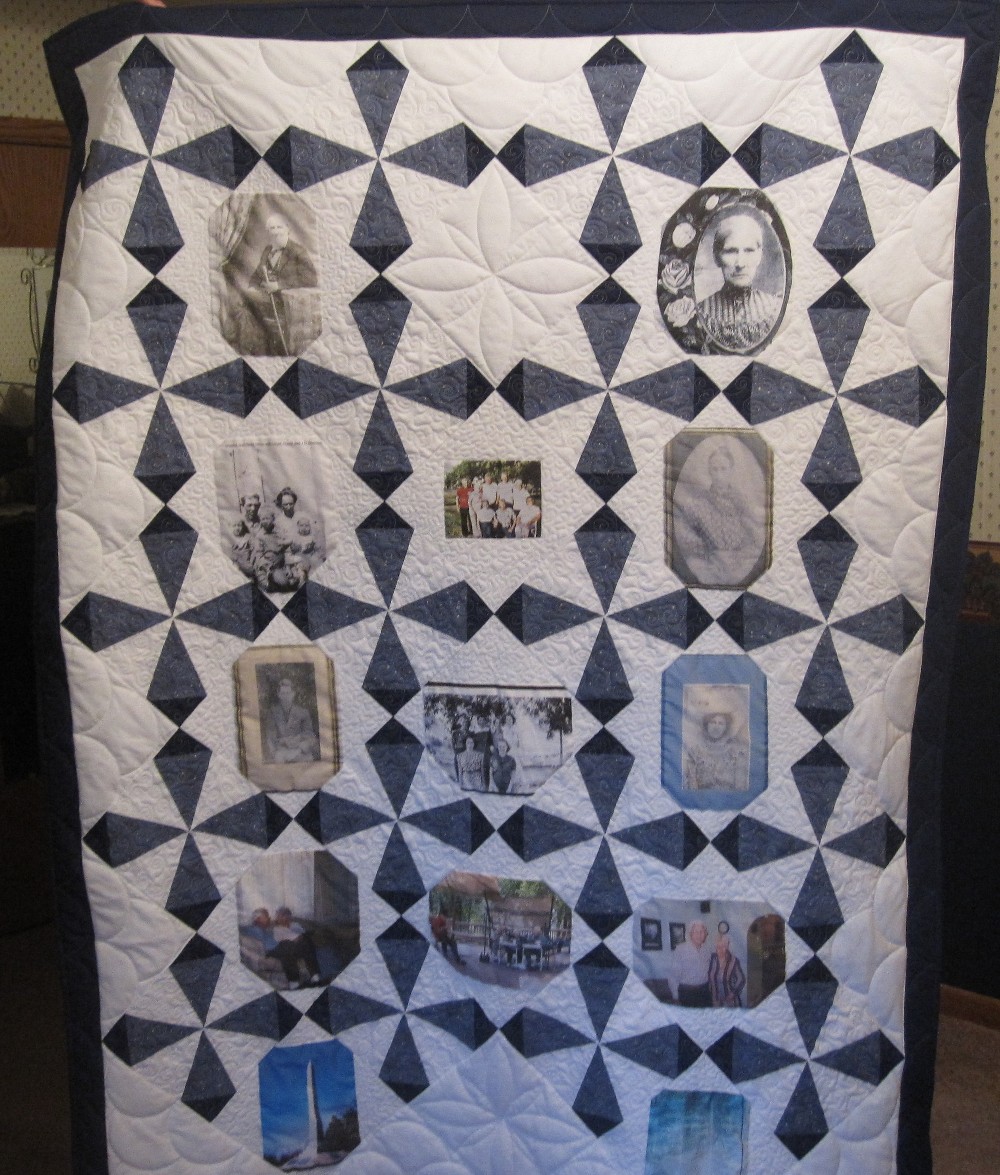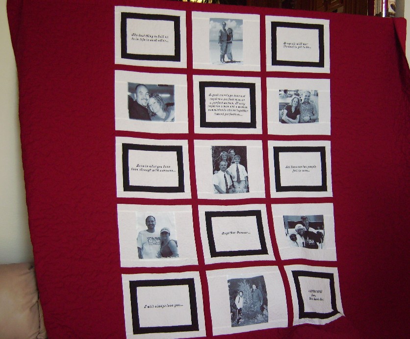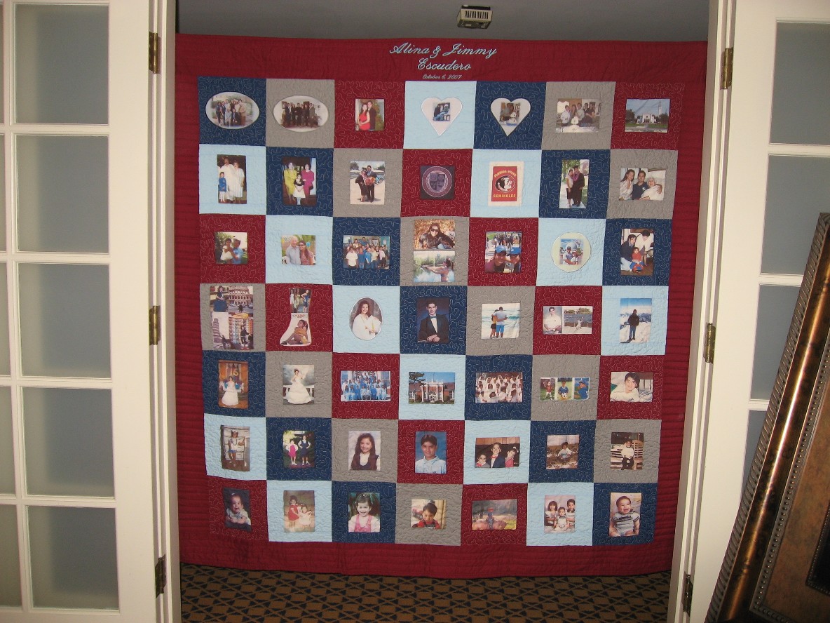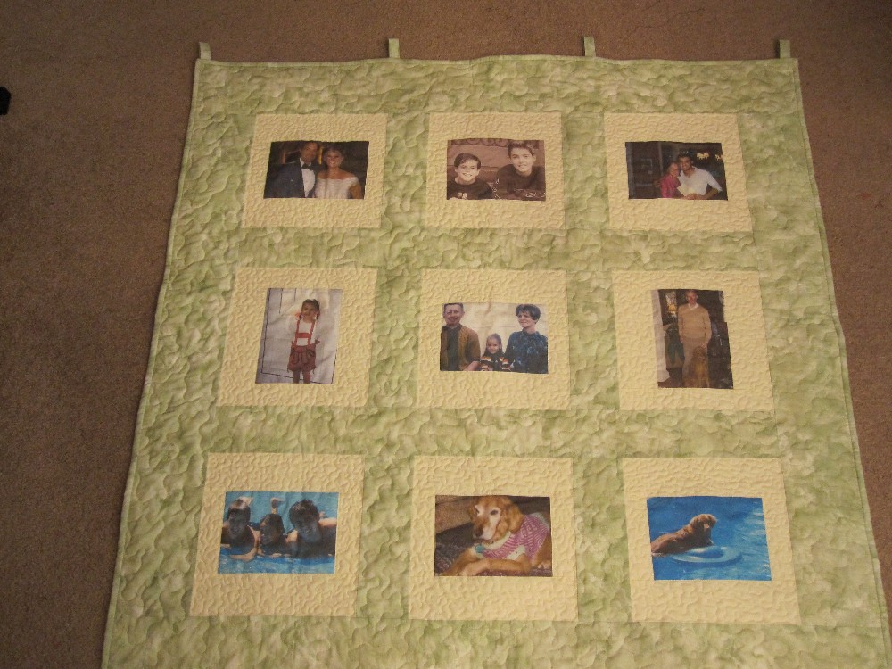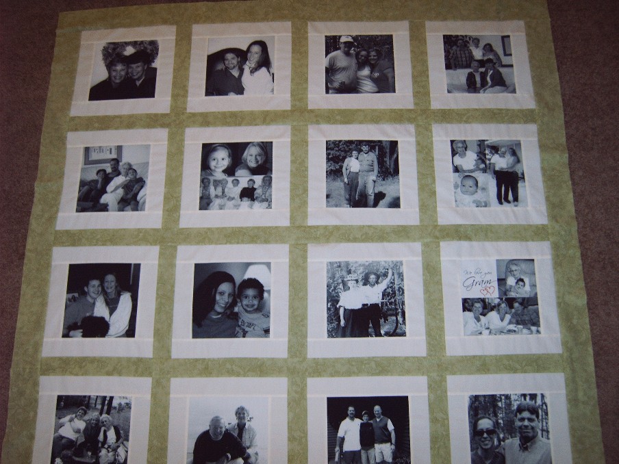 This quilt seems like a mini photo album because of the variety of pictures.