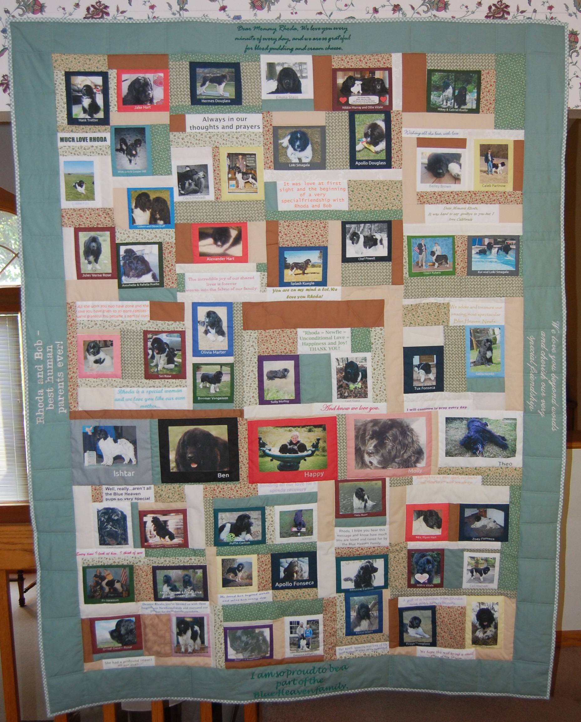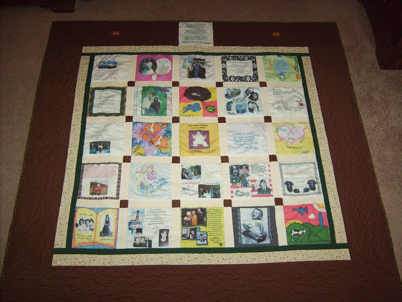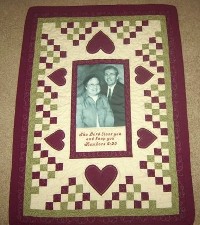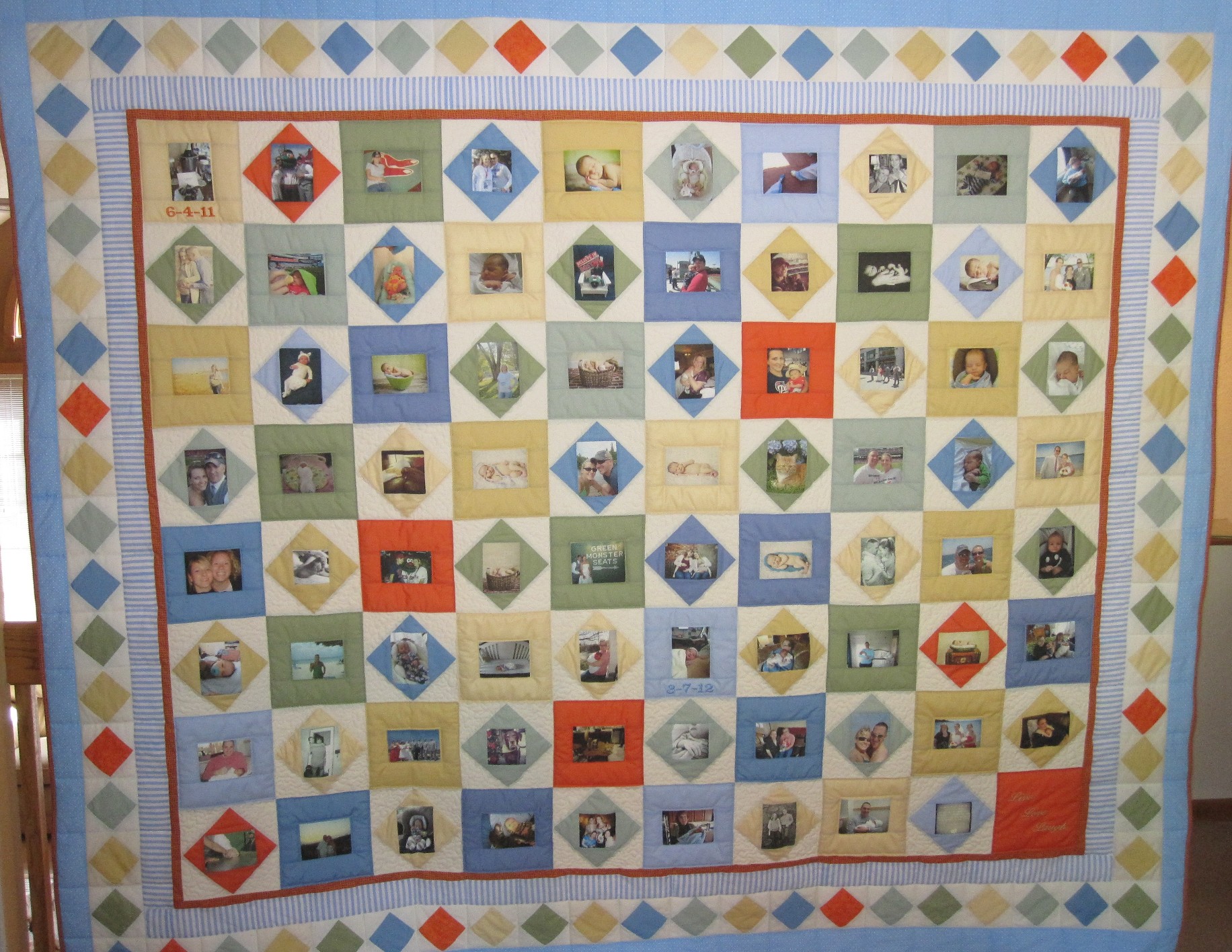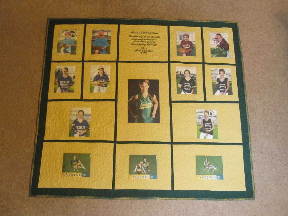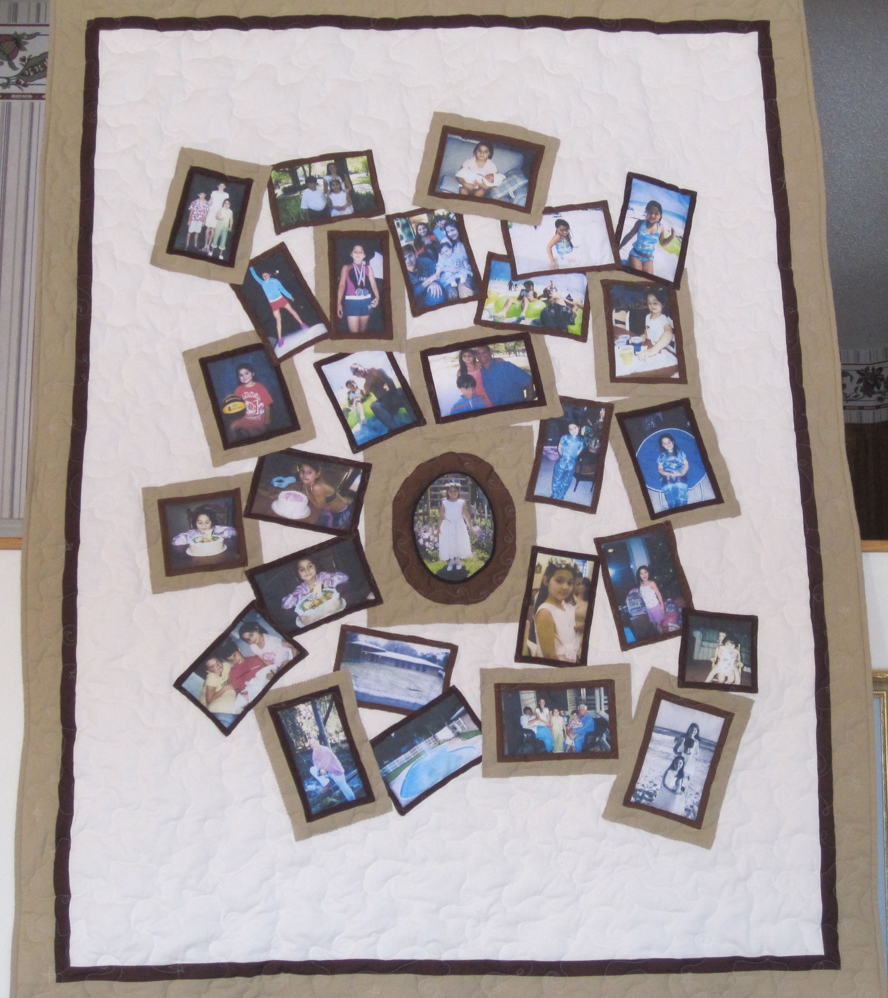 This quilt seems like a mini photo album because of the variety of pictures.