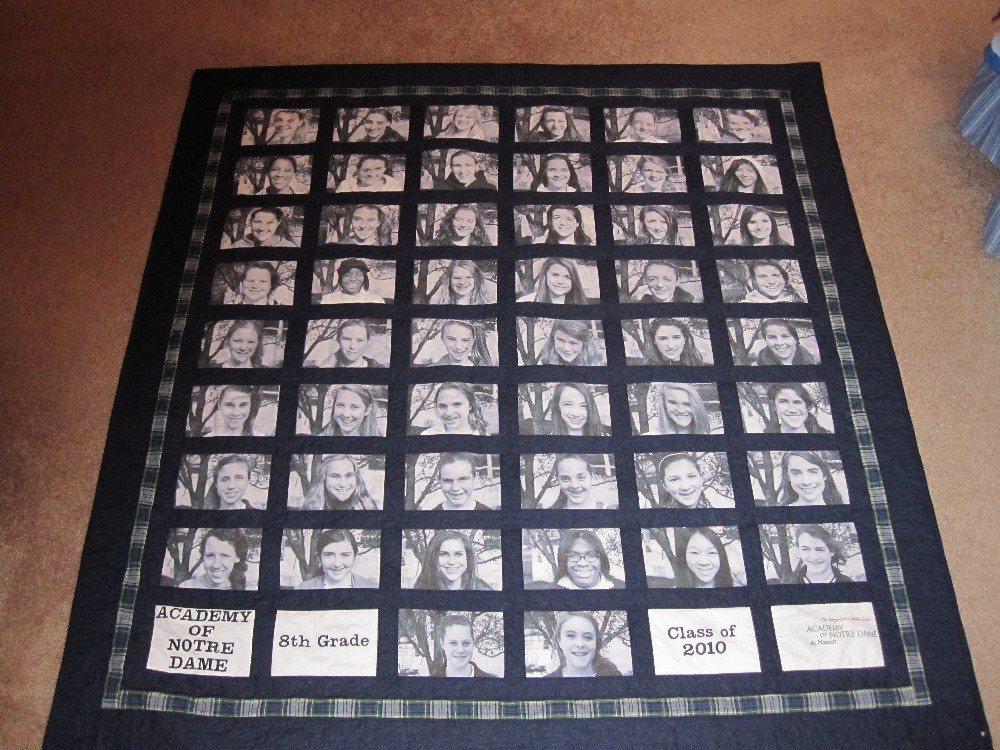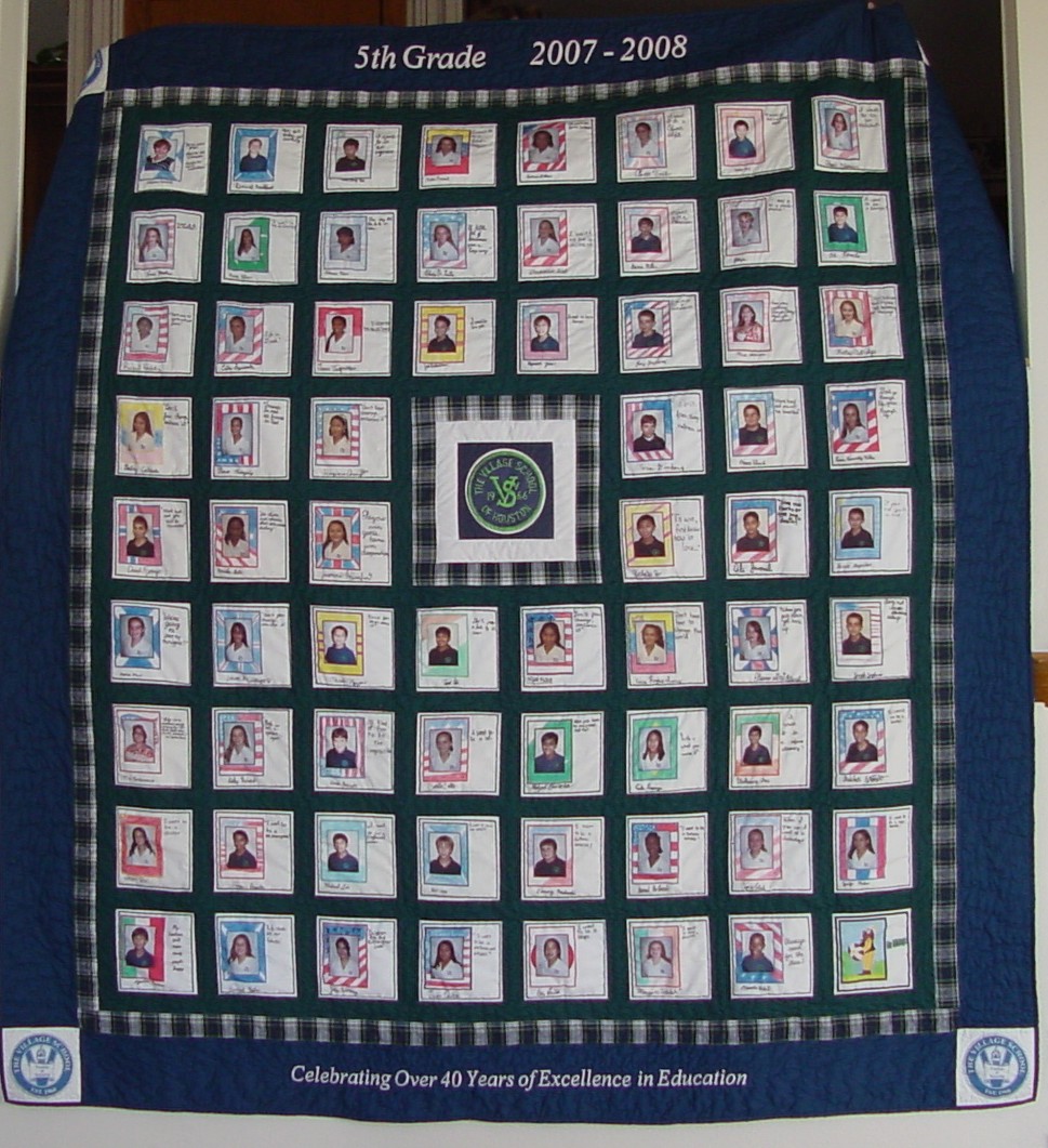 Individual photos of a class were put together on a quilt for a school auction.